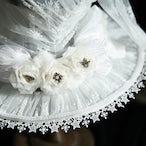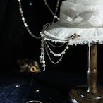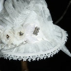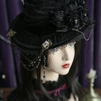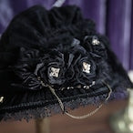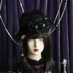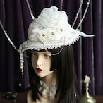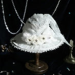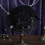 A hat for the star witches, made with lightweight summer materials. This sheer hat has built in pleats for a floppy shape. It is covered in beautiful decorations and thoughtful details. The corsage and chain are removable.