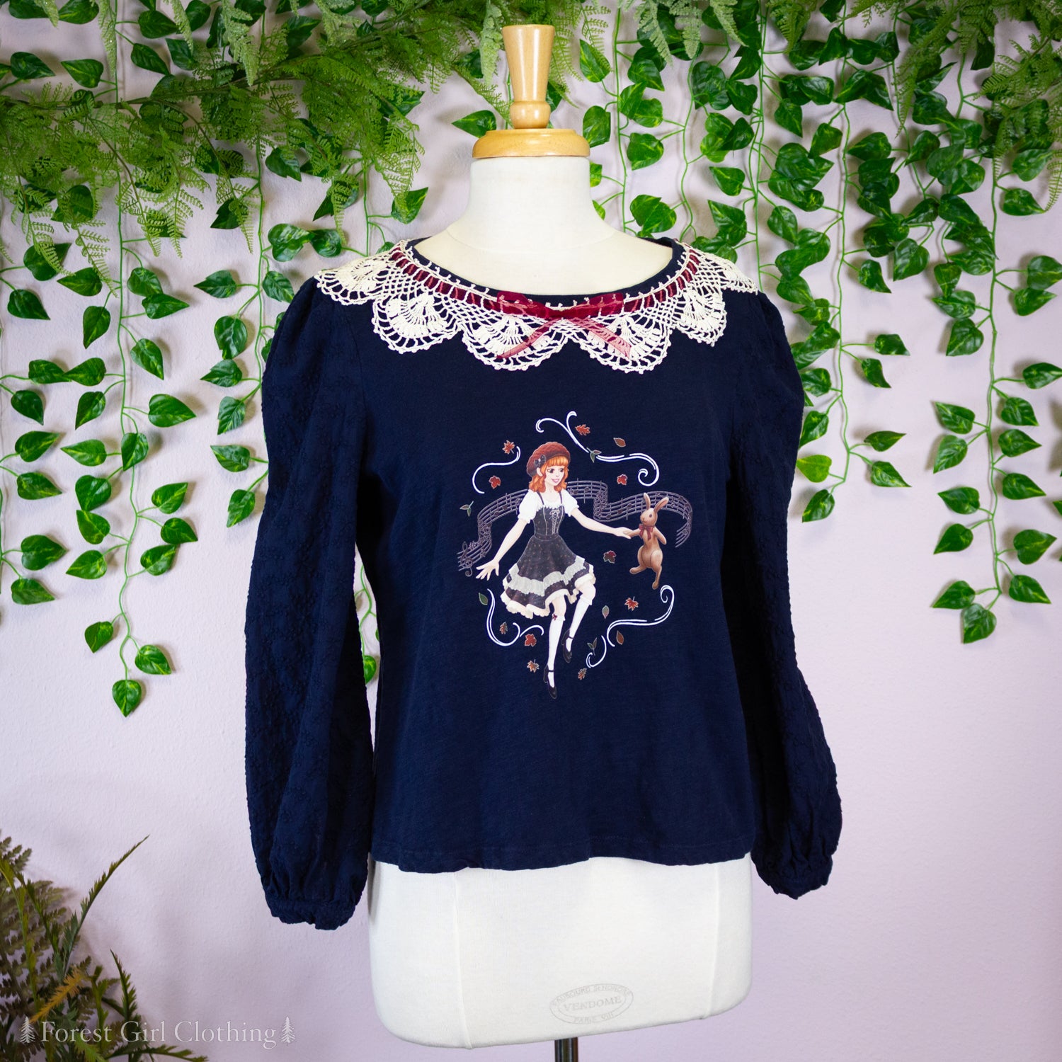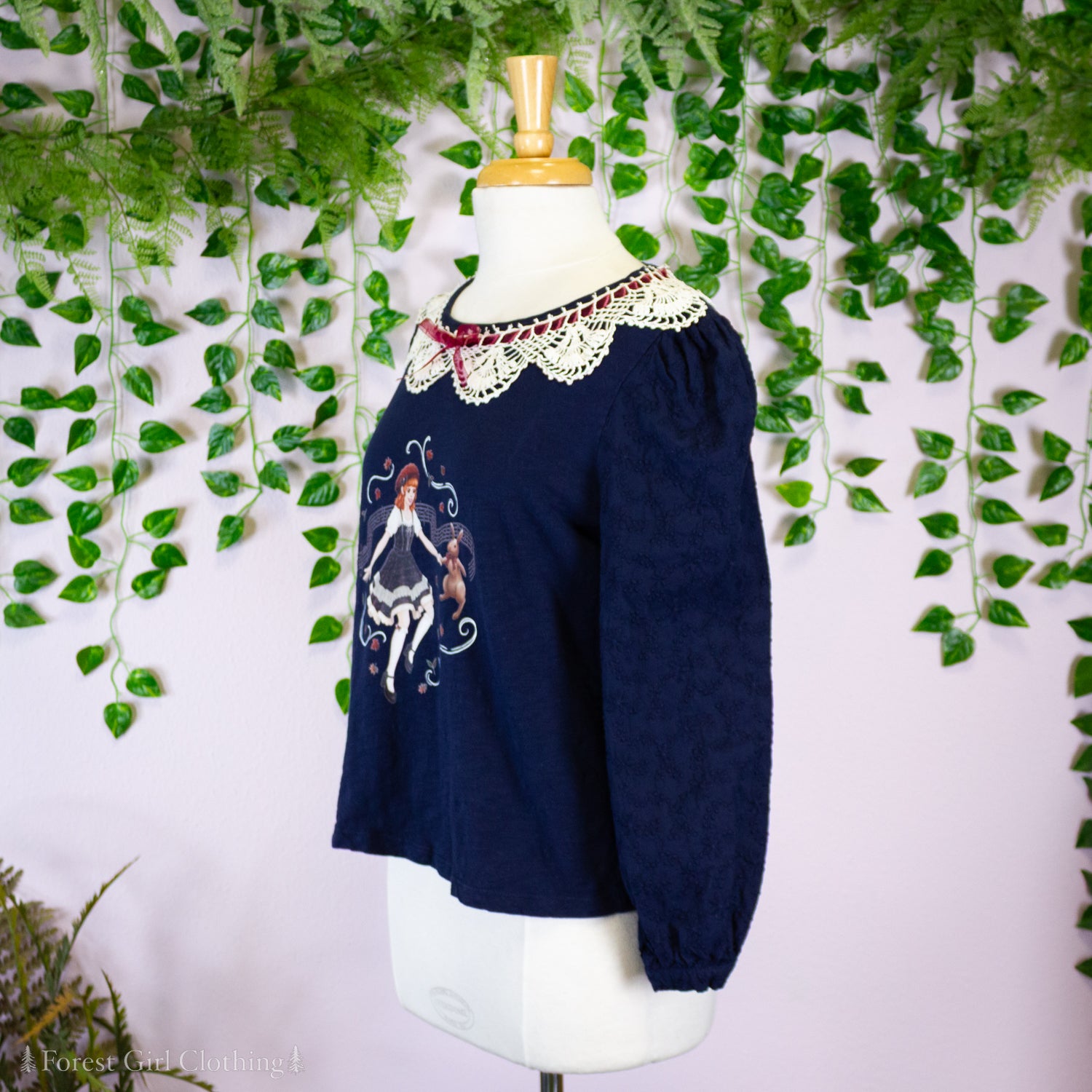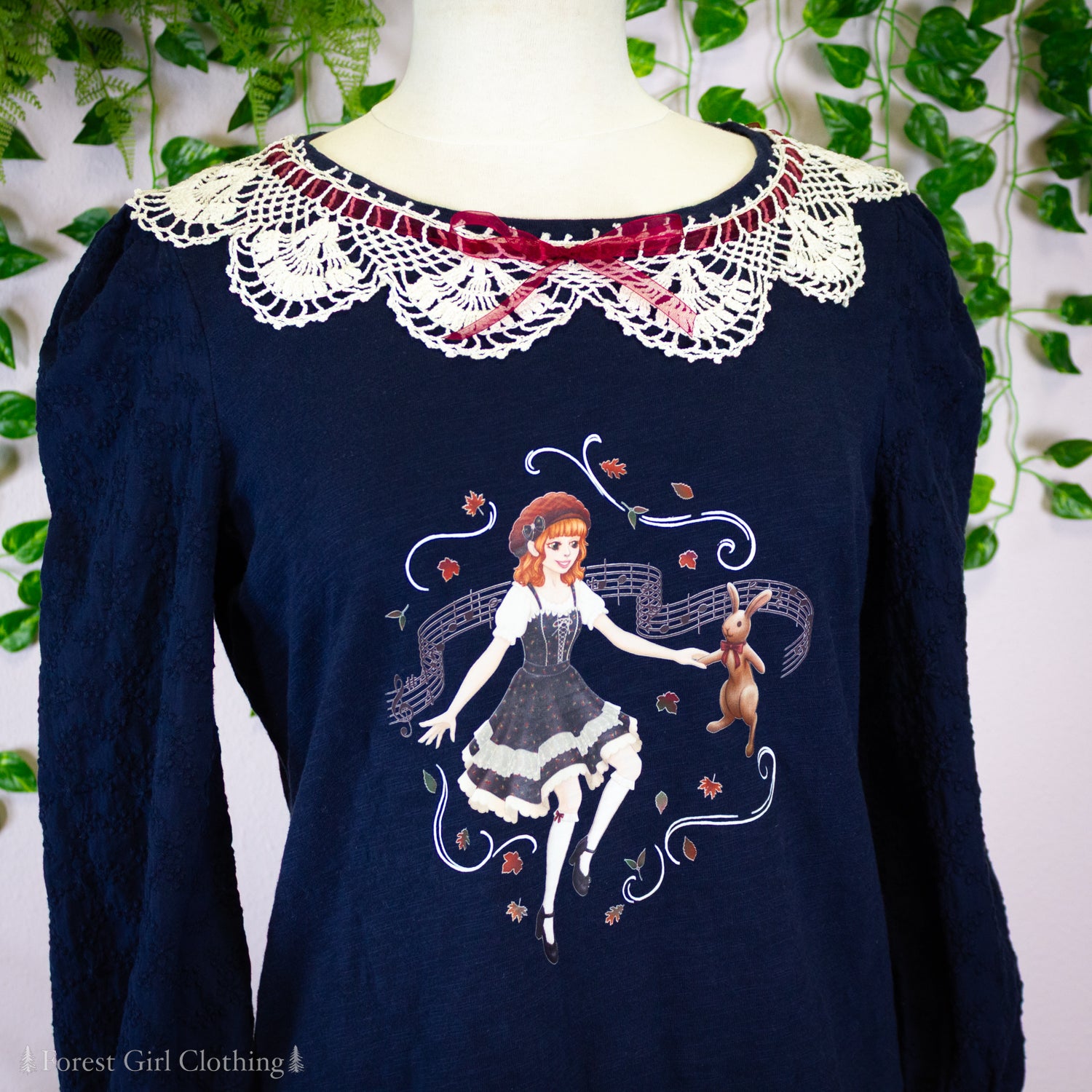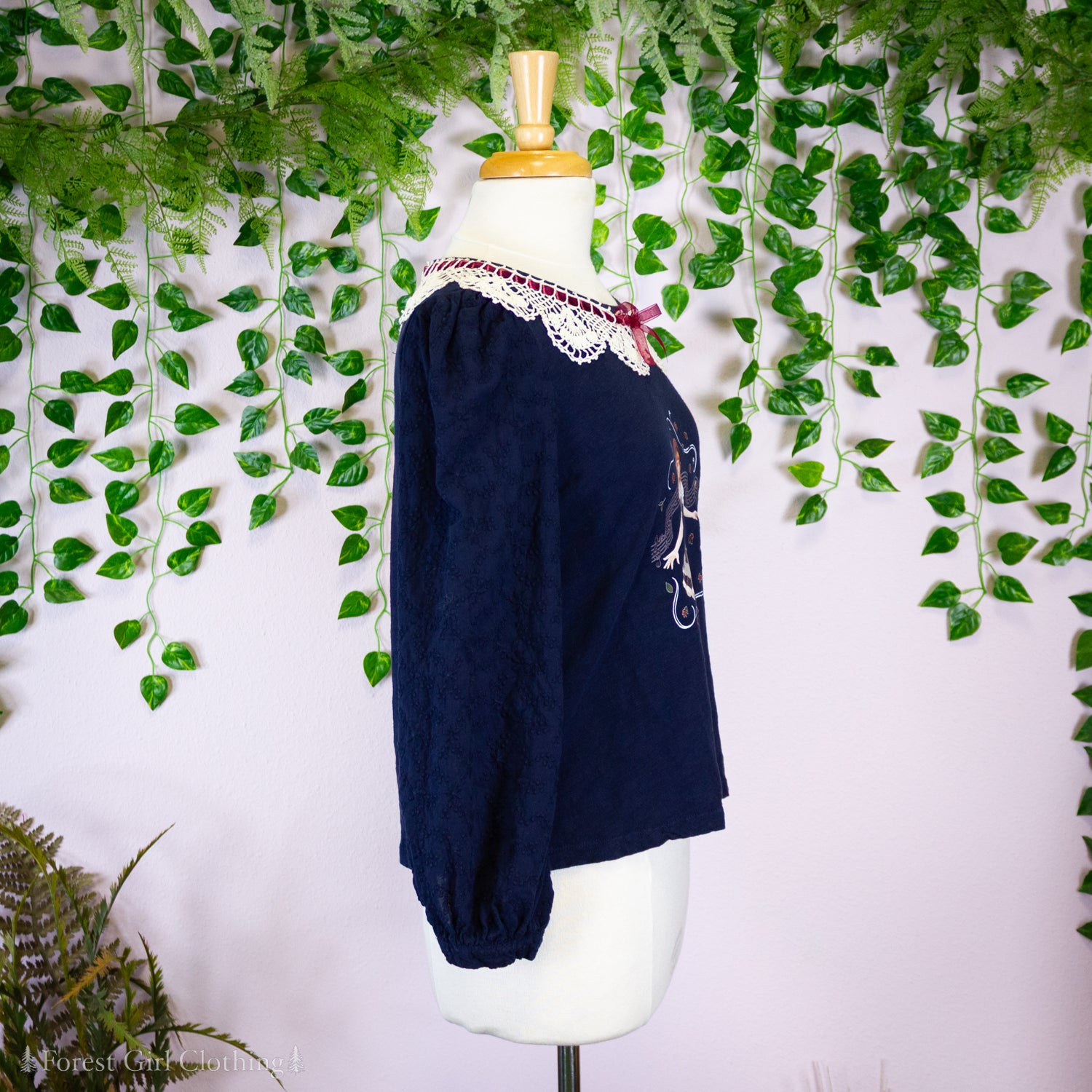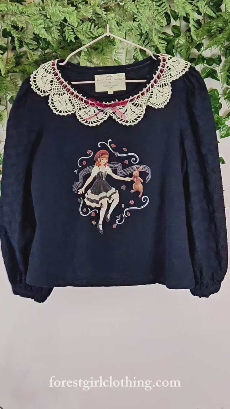 Song of the Autumn Forest Navy Crochet Collar Top