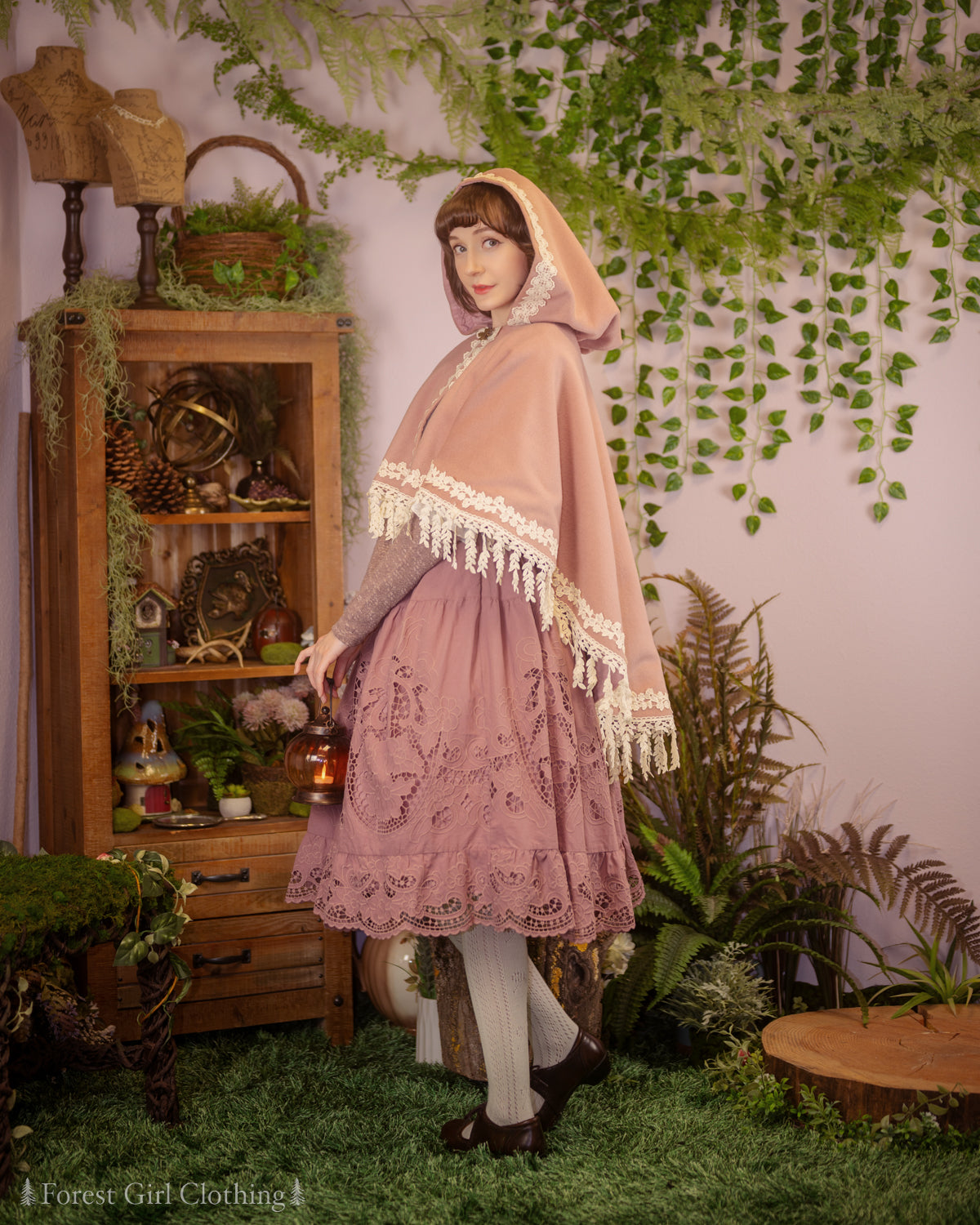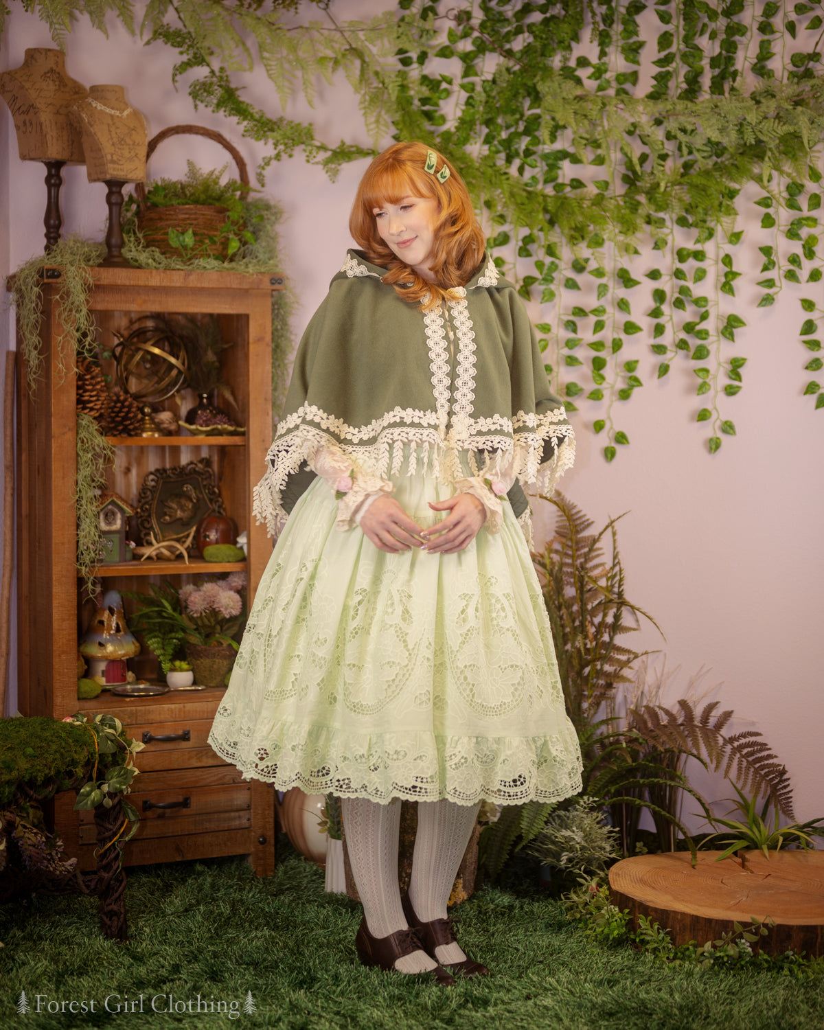 Willow Forest Cape 🌿 named for the draping leaves along its flowing hemline. This cape has a sweeping circular cut, making it a true one-size item that will fit any body size! The hood is oversize with plenty of extra room, and it closes with a brass clasp shaped like a maple leaf.