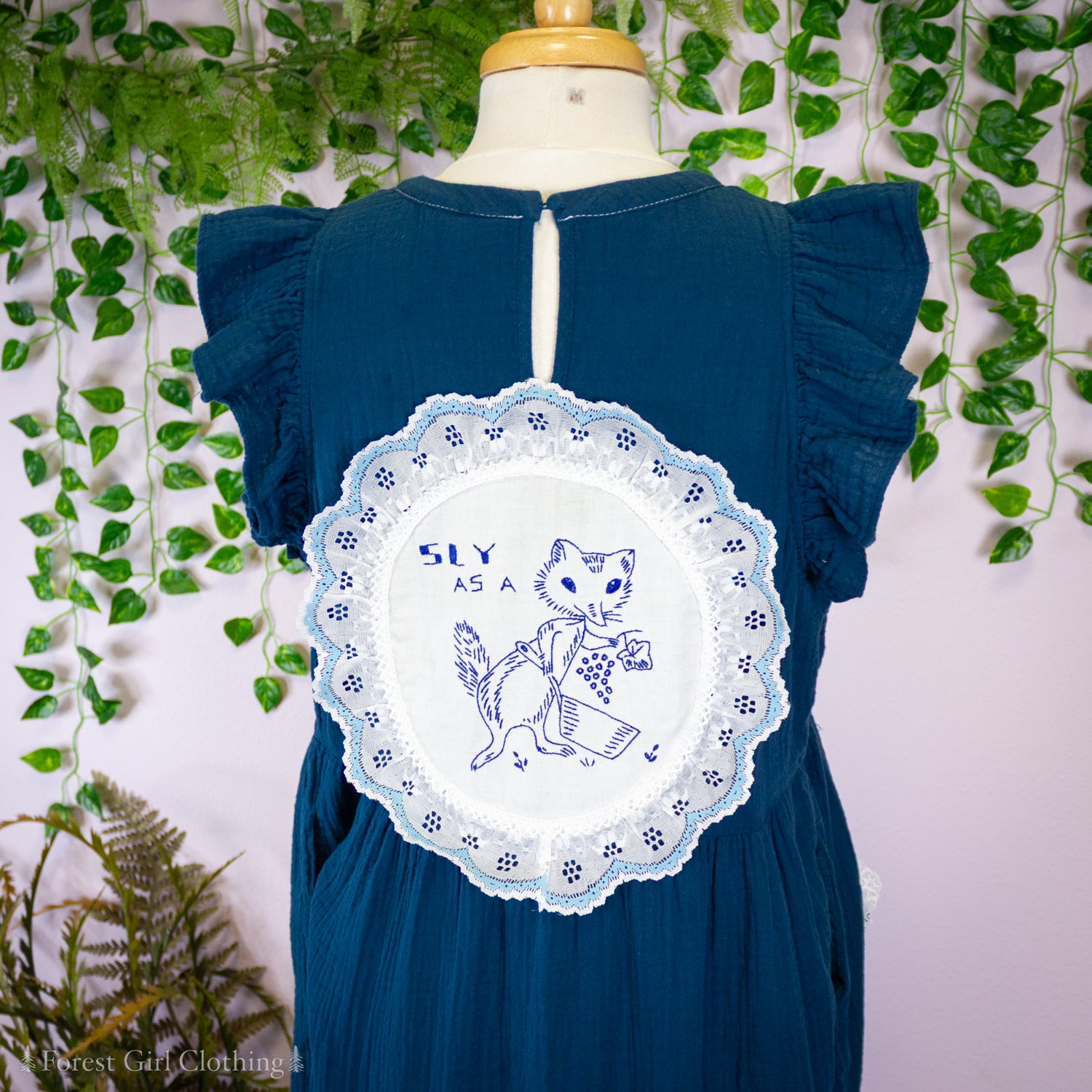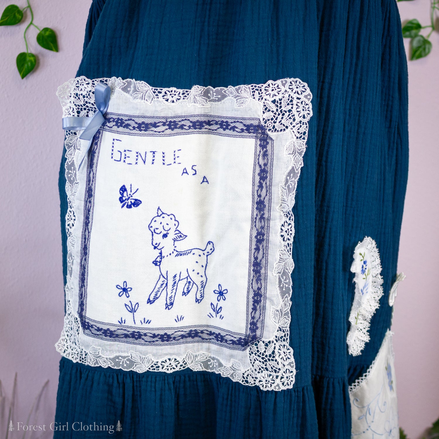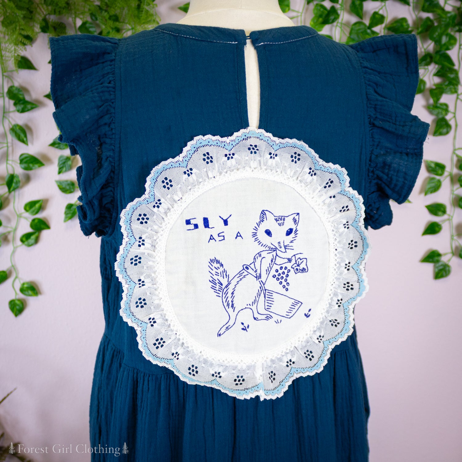 Be gentle as a lamb...but sly as a fox. This dress showcases your many facets with beautiful, vintage embroidery panels depicting a cute lamb and fox. With blue and white floral and embroidery accents, this comfy cotton dress is covered in vintage charm. It also has pockets!
