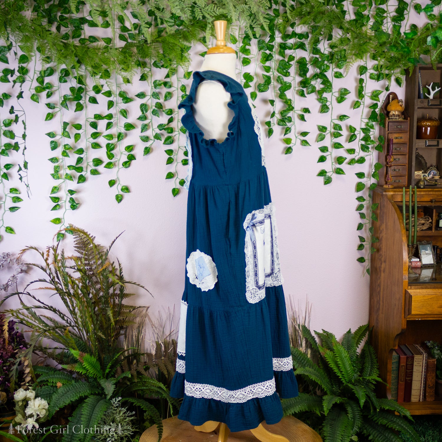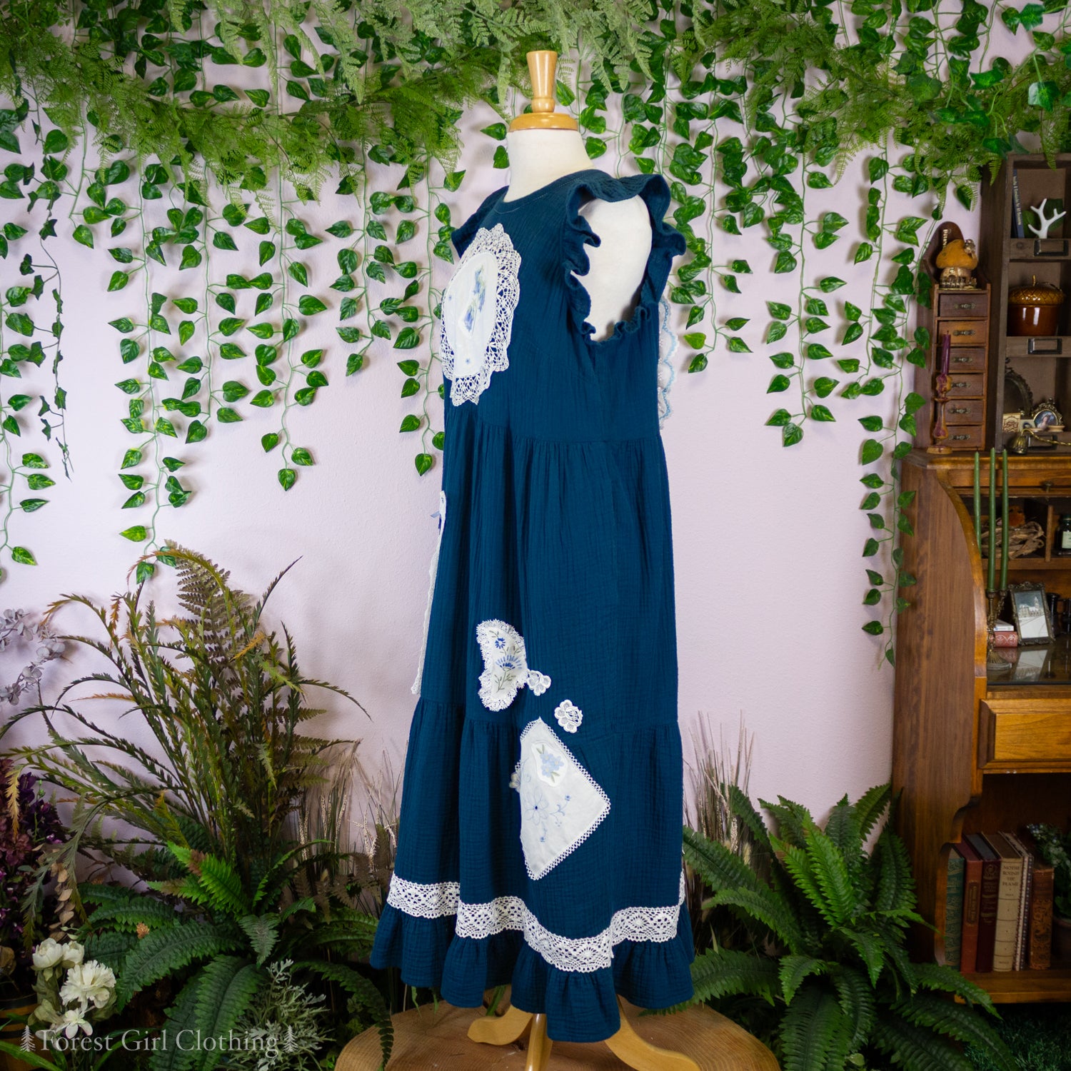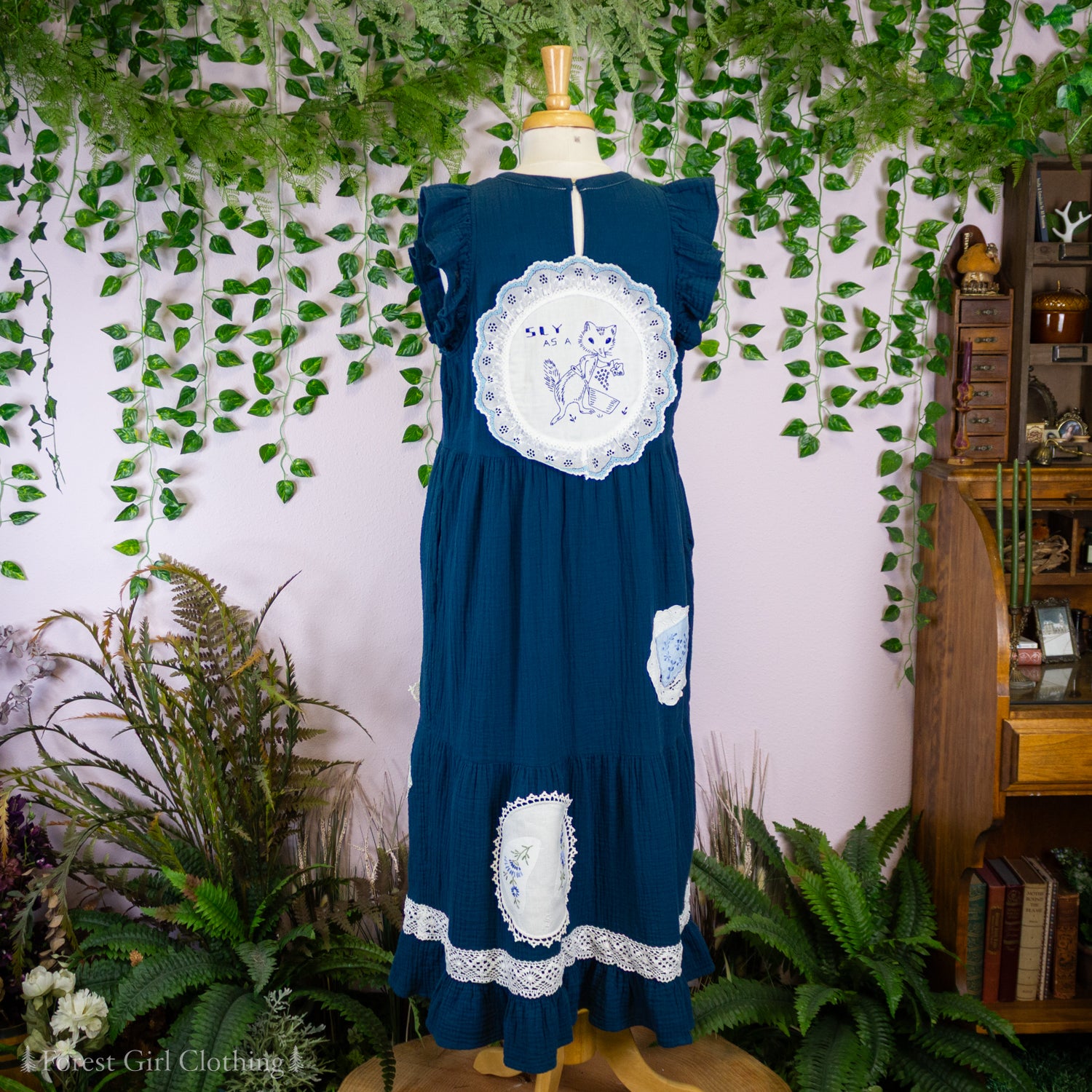 Be gentle as a lamb...but sly as a fox. This dress showcases your many facets with beautiful, vintage embroidery panels depicting a cute lamb and fox. With blue and white floral and embroidery accents, this comfy cotton dress is covered in vintage charm. It also has pockets!